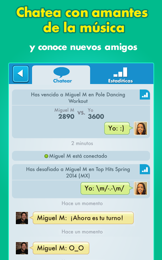 * Comparte tus canciones preferidas con tus amigos del chat de SongPop
