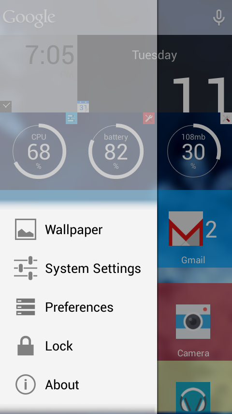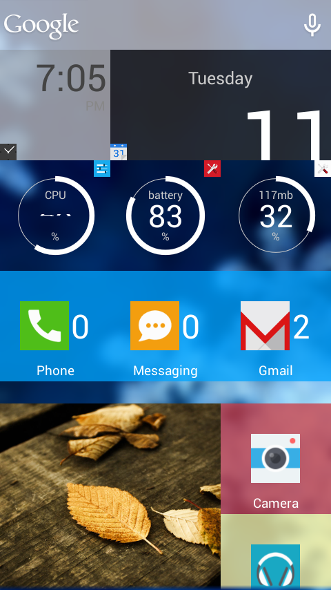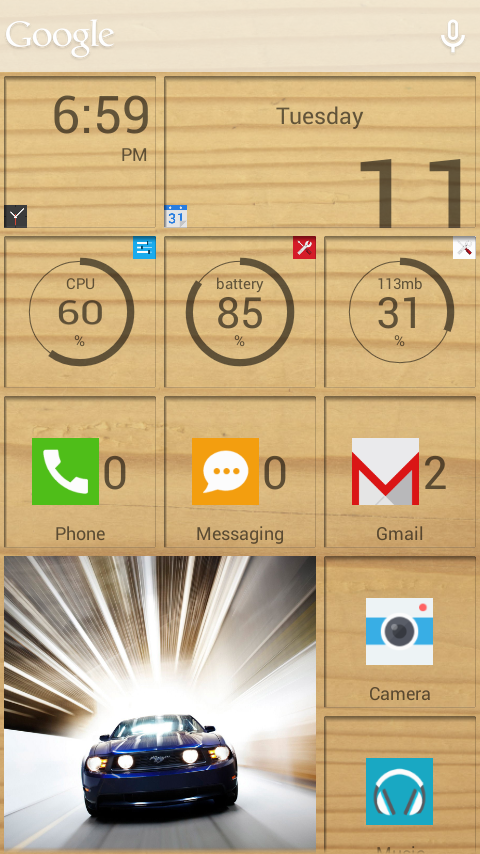 - Tantas formas son compatibles: automática de imagen, imagen personalizada, carga de la CPU, la memoria disponible, nivel de batería, llamadas perdidas, mensajes sin leer, leer mensajes de Gmail, fecha / hora ...