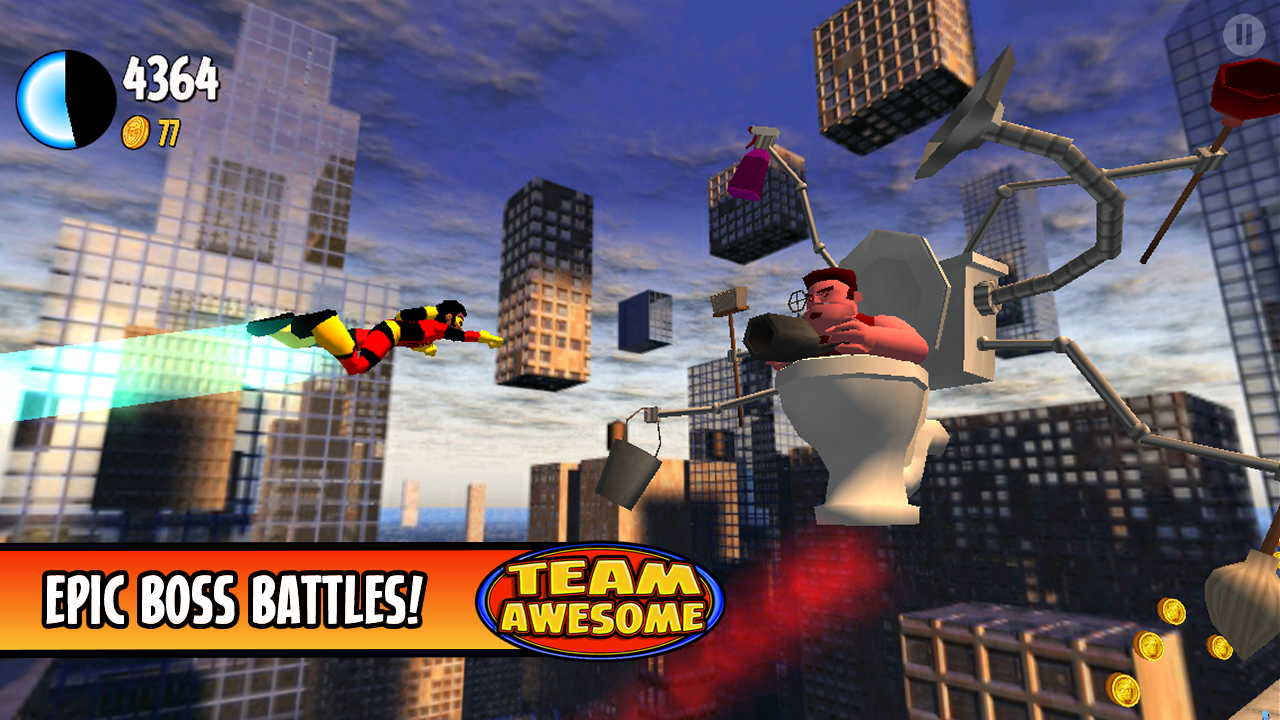 Eran sólo cuatro personas comunes, atrapados en cuatro trabajos sin salida - hasta que un día un misterioso meteorito se estrelló a la tierra y lo hizo todo ... IMPRESIONANTE! ¡Prepárate para el explosivo nuevo juego de arcade de desplazamiento lateral de los Hermanos Edis ... Team Awesome!