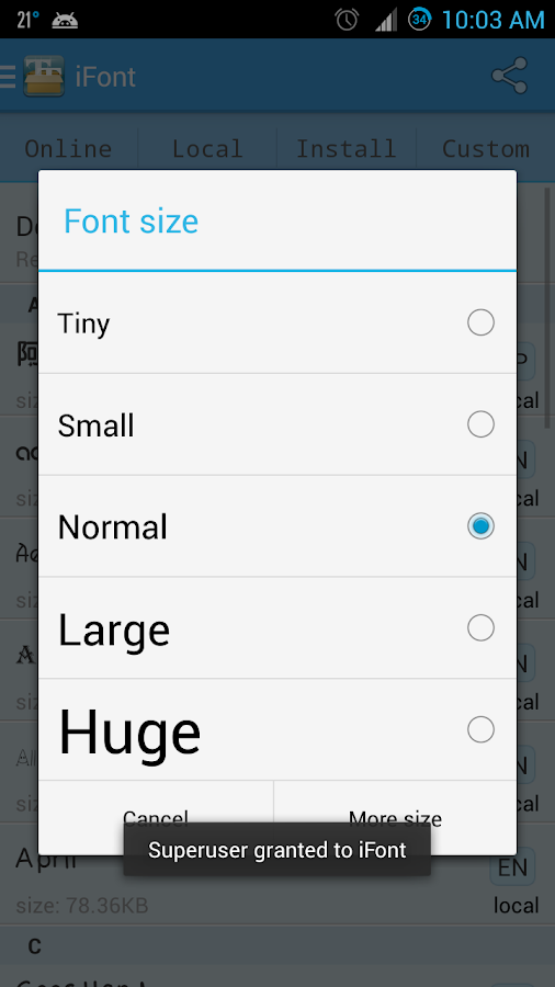 ¿Quieres que tu teléfono se ha convertido en distintivos, así como más hermoso? Es s fácil cambiar la fuente del sistema. Integrados cientos de fuente preciosa exquisito, cambiar fácilmente la fuente del sistema, el estado de ánimo cambio simple! Flores Font, personal ¡Domino! Así interfaz del teléfono monótona mira! Que usted tiene un humor feliz todos los días, ama la vida, ama las flores fonts.Font, personalizado domino! Así interfaz del teléfono monótona mira! Que usted tiene un humor feliz todos los días.