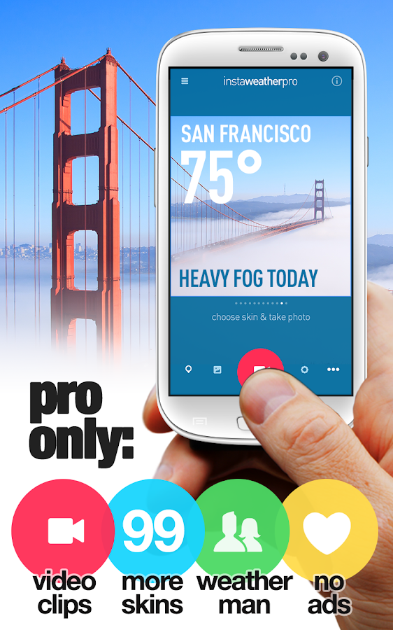 InstaWeather sabe cuando estás en determinado momento y que muestra que el recubrimiento agregado a tu foto y video! Así que si estás perdido en alguna parte apenas hacer una foto con esta aplicación y encontrar el camino de regreso a casa.