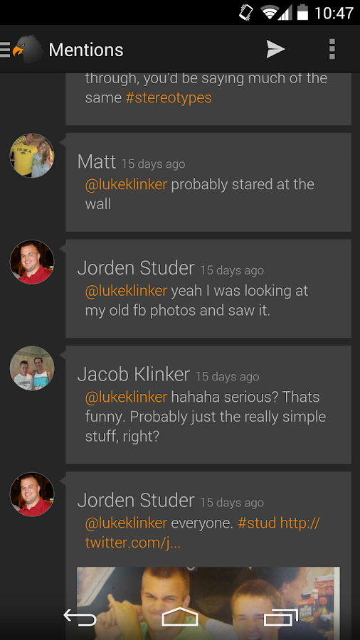 - Ver las líneas de tiempo (principal, menciones, mensajes directos, enlaces y fotos)