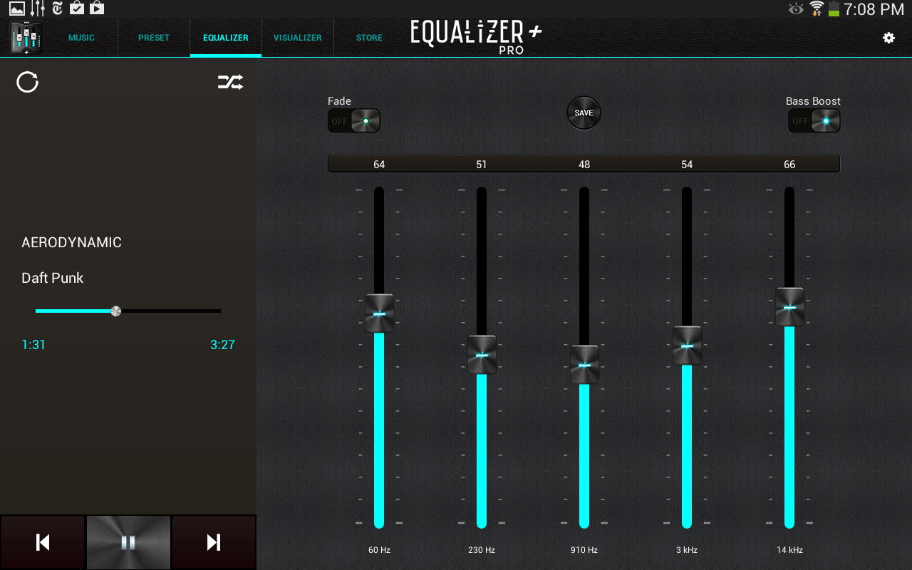 Amplifica y mejora la calidad y el volumen del sonido con Ecualizador +. Ecualizador + es un reproductor de música y un ecualizador de frecuencia. Accede a tu biblioteca de música directamente desde la app. Configura las frecuencias de tus canciones y guarda tus perfiles de audio. Ecualizador + te permite controlar 5 frecuencias de banda diferentes. Ajusta cada filtro para sacar lo mejor de tu música. Como si esto fuera poco, tendrás la posibilidad de amplificar aún más los sonidos bajos gracias a la opción Amplificador de bajos. Finalmente, podrás visualizar el sonido a través de un analizador de espectro, disponible directamente desde la app.
