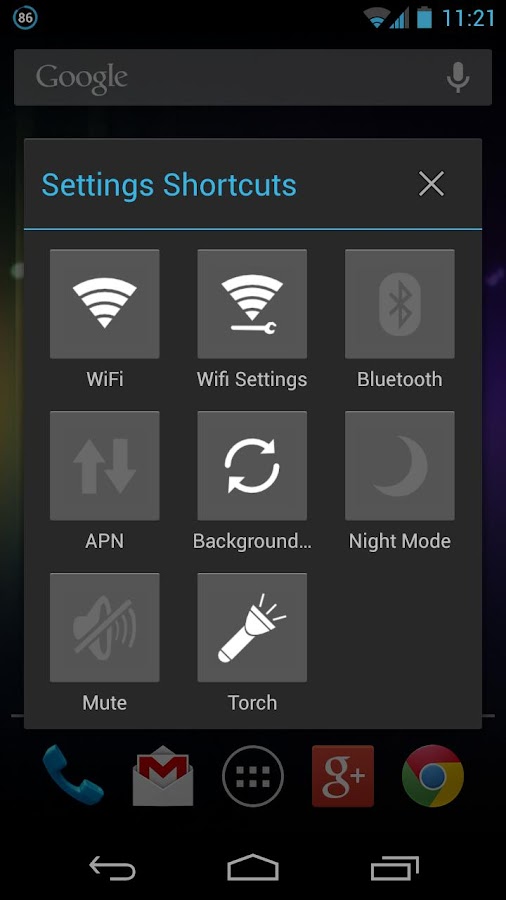 - Accesos directos a Power-Summary/Background sincronización / Wifi / configuración de BT