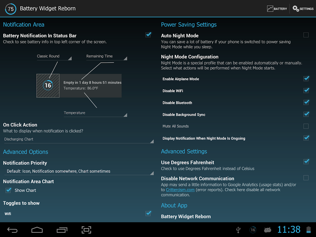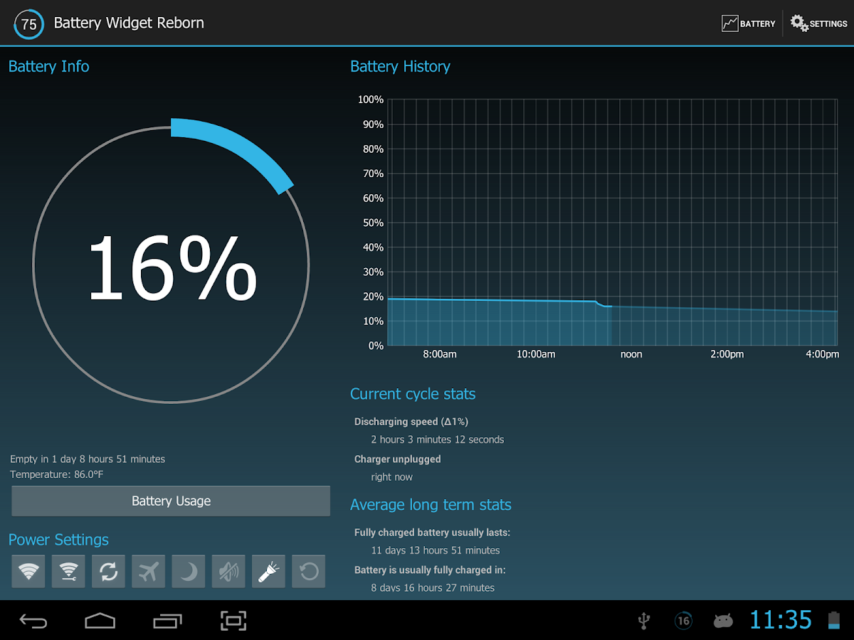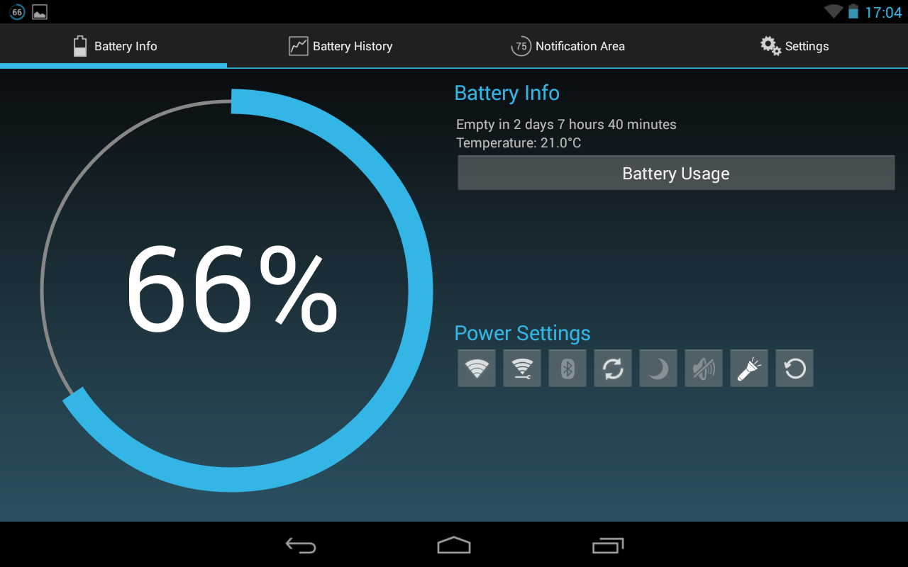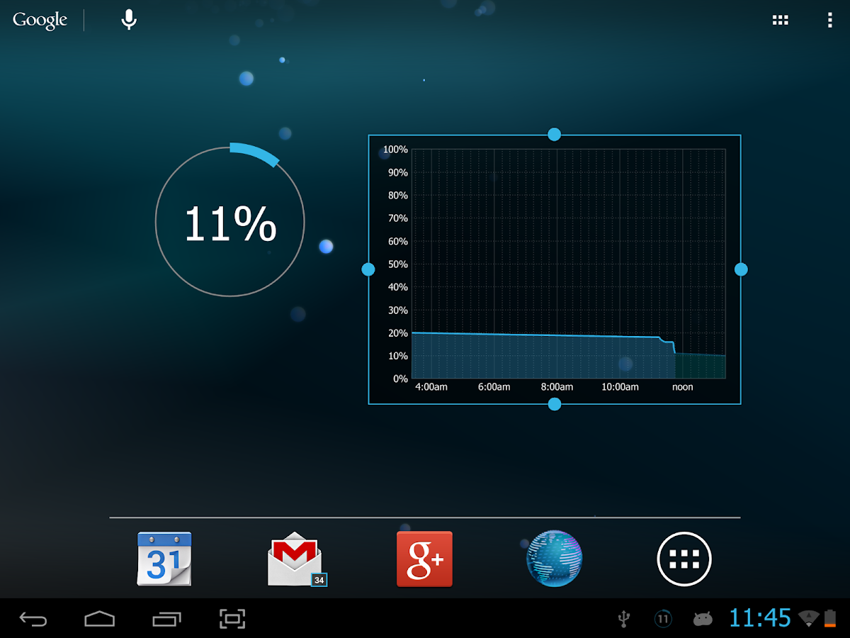 Nueva Widget y elegante Widget de bateria con funcionalidades avanzadas. Diseño Holo con temática que coincide perfectamente Android 4.x pero se puede disfrutar también en Android 2.3 gracias a la biblioteca de HoloEverywhere