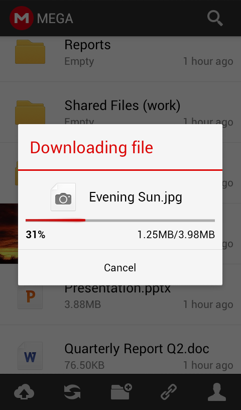 MEGA App para Android te permite gestionar tus ficheros, subir y descargar, buscar y mucho más.