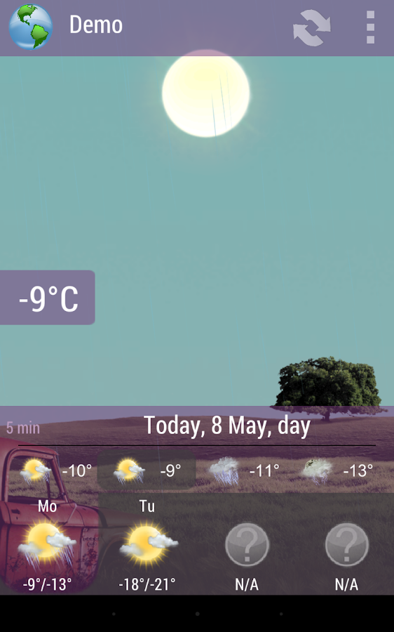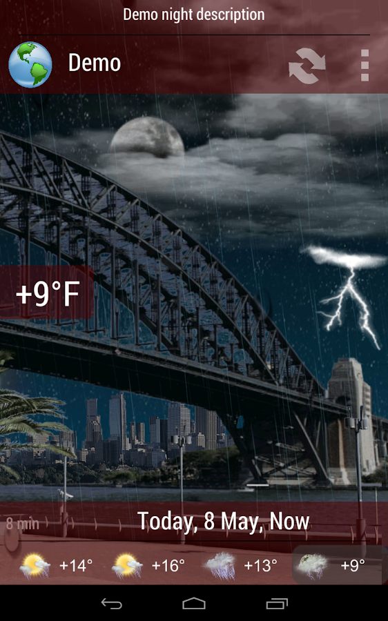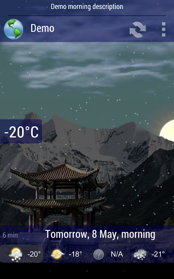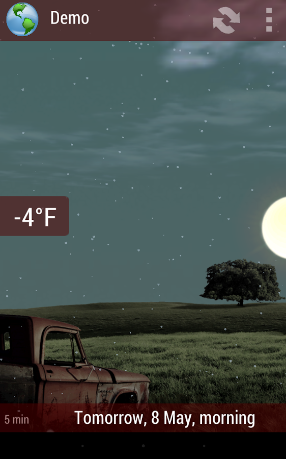 Tiempo Animado - Aplicacion de pronostico del tiempo. Exquisitos efectos realistas de video de las nubes, lluvia y nieve te dara la sensacion de estar viviendo las condiciones meteorologicas actuales o futuras de mas de 50000 localidades en todo el mundo.