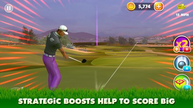 Juega a través de los desafíos de ritmo rápido de golf en los cursos de la mayoría de los más espectaculares del PGA TOUR ® en el mundo, incluyendo el TPC Sawgrass y Pinehurst No. 2. Arranca refuerzos poderosos y competir con tus amigos para ganar coronas y convertirse en el rey del golf!