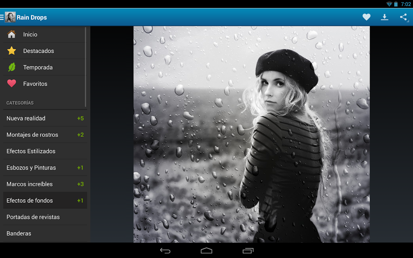 - efectos estilizados para convertir tus fotos en tarjetas antiguas o peliculas retro.