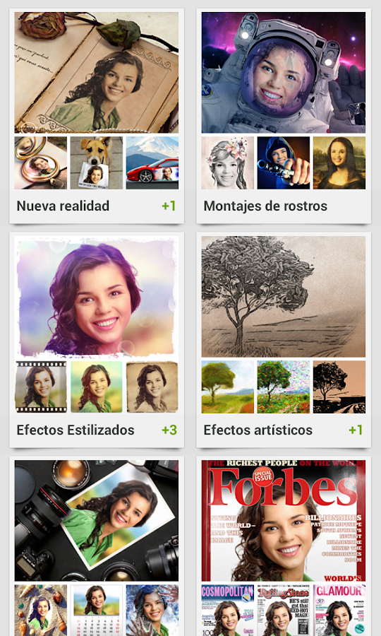 Mejora tus fotos con mas de 570 diferentes marcos, filtros, efectos y fotomontajes. Pho.to Lab es un editor de fotos simple, rapido y divertido. No debes ser el maestro de Photoshop para convertir tus fotos en imagenes chistosas o retratos bellos. Solo escoge un filtro, marco o fotomontaje para aplicar, despues elige un imagen ¡y ya esta! Pho.to Lab realiza todo el trabajo para que te relajes y obtengas toda la gloria.