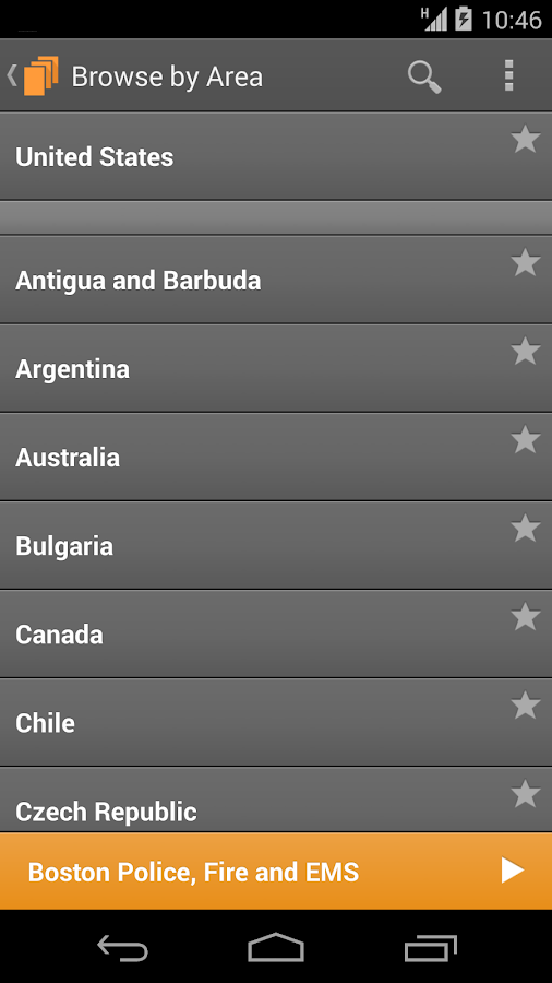 * Explorar el directorio de escáneres por ubicación o el género (la seguridad pública, el tráfico aéreo, meteorología, ferrocarril, etc.)