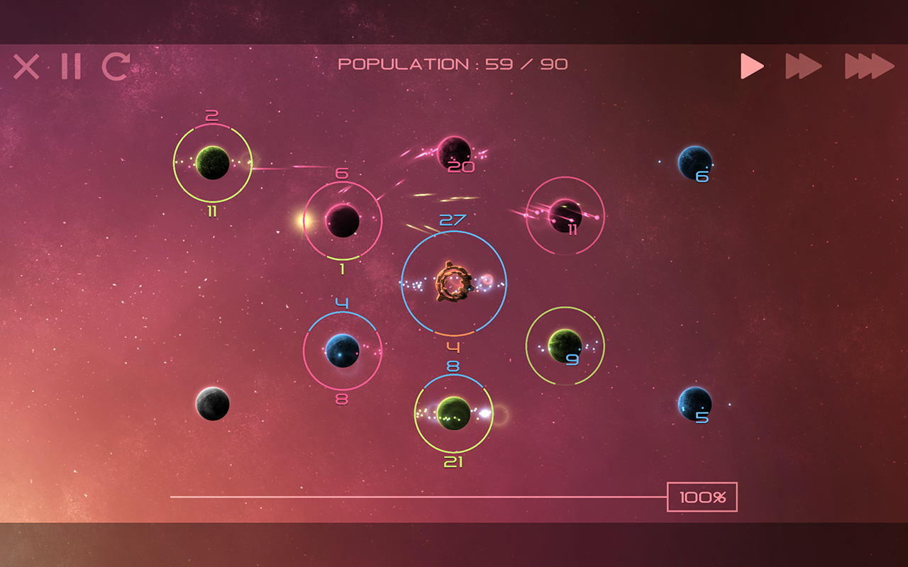 Solarmax es un juego de estrategia simplificada de guerra interplanetaria. Colonizar planetas, construir cientos de naves espaciales, y el uso de tácticas superiores a abrumar a sus oponentes.