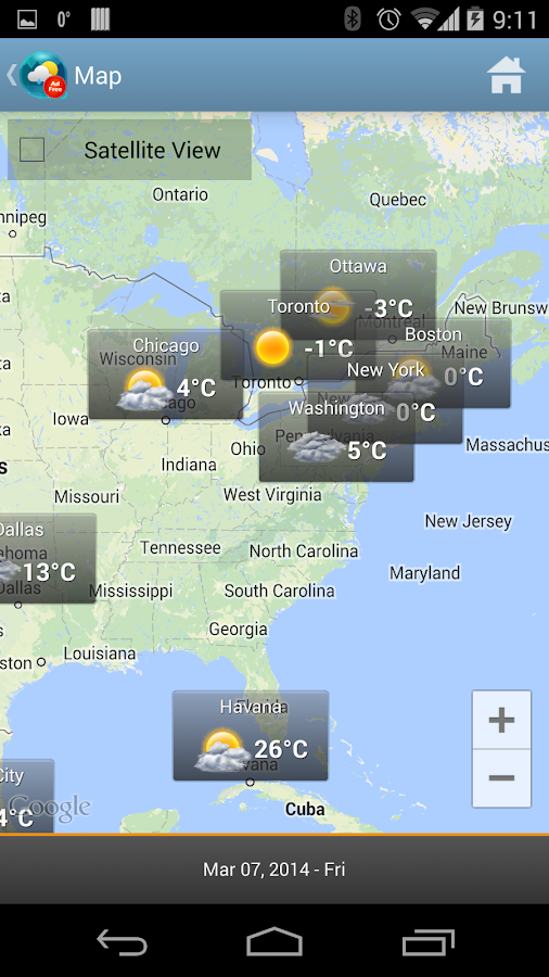 - Mapa del tiempo , con posibilidad de añadir cualquier ciudad a su lista de ciudades