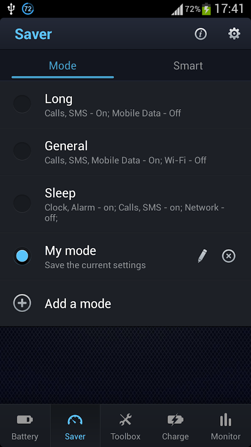 - Modo general (función de red básica se abrió, satisfacer las necesidades normales de ahorro de batería);