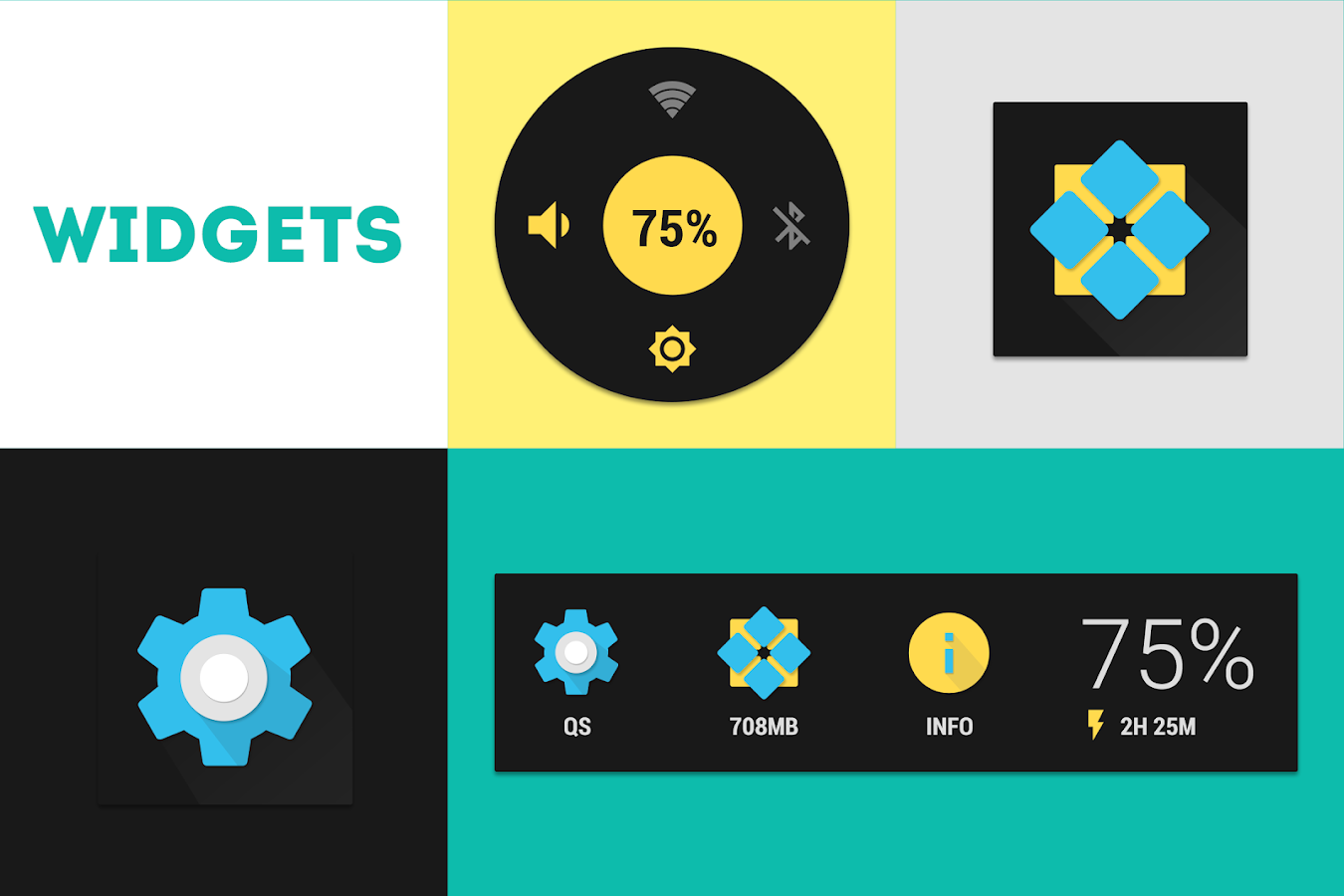 Bataria fue diseñada para ser pequeña y eficiente, incluyendo la barra de estado de batería y un widget de batería 1x1 para un funcionamiento rápido.